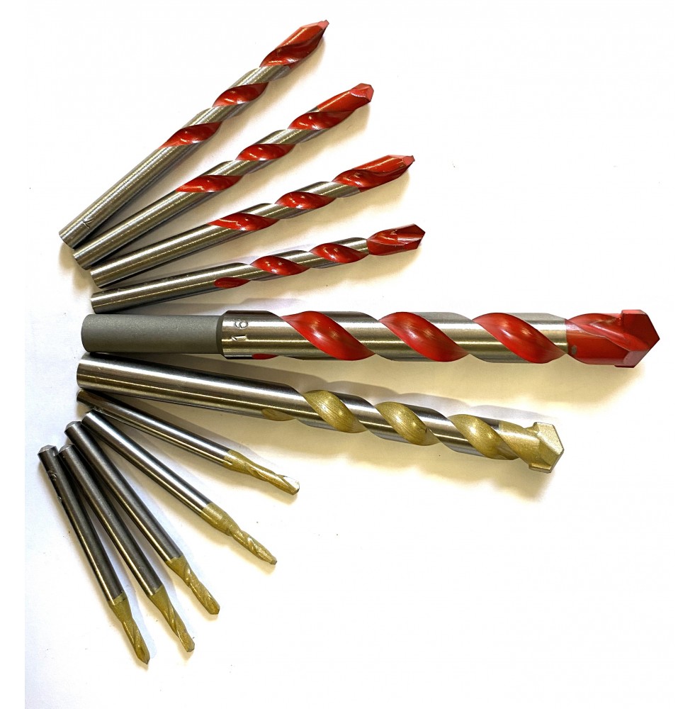 Le punte da trapano per marmo e granito sono utensili professionali in metallo duro (Widia), progettati per garantire precisione e durata nella lavorazione di materiali lapidei. La scelta della modalità d’uso (rotazione o percussione) e della velocità dipende dal tipo di materiale da forare.