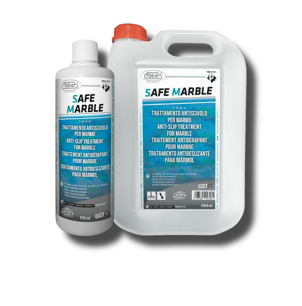 SAFE MARBLE è un trattamento in base acqua specificatamente studiato e sviluppato per aumentare il grip superficiale dei pavimenti in marmo, travertino, limestone e pietre calcaree in generale, eliminando le problematiche legate alla loro scivolosità. SAFE MARBLE è un prodotto unico nel suo genere perchè permette di risolvere le problematiche di scivolosità sui materiali calcarei, che per loro natura risultano più complessi da trattare.